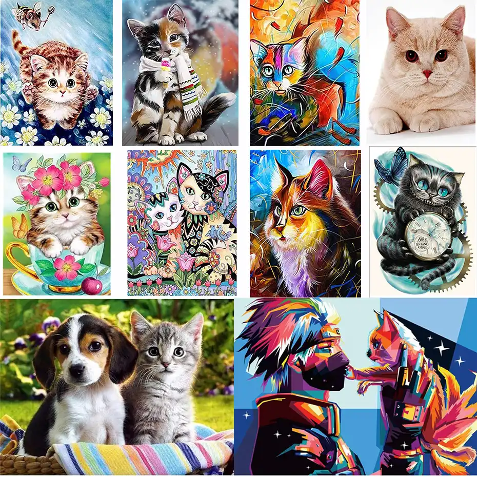 Chenistory Bunte Katze Tiere Diy Malerei Durch Zahlen Kits Acryl Moderne Wand Kunst Bild Hand Gemalt Fur Einzigartige Geschenk 40x50 Art Pictures Hand Painteddiy Painting Aliexpress