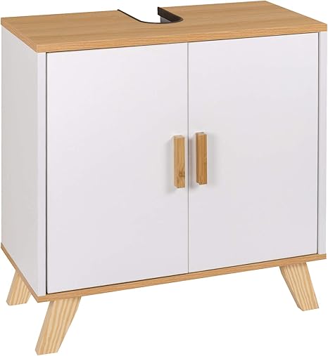Esituro Sbp0026 Waschbeckenunterschrank Badschrank Mit Siphonausschnitt Waschtischschrank Badzimmerschrank Badregal Aufbewahrungsschrank Verstellbare Ebene Aus Mdf Bambus Weiss Natur Amazon De Kuche Haushalt