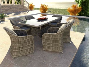 Polyrattan Dining Group Set Bodiner 6 4 Satin Finish Living Zone Garden Furniture Living Zone