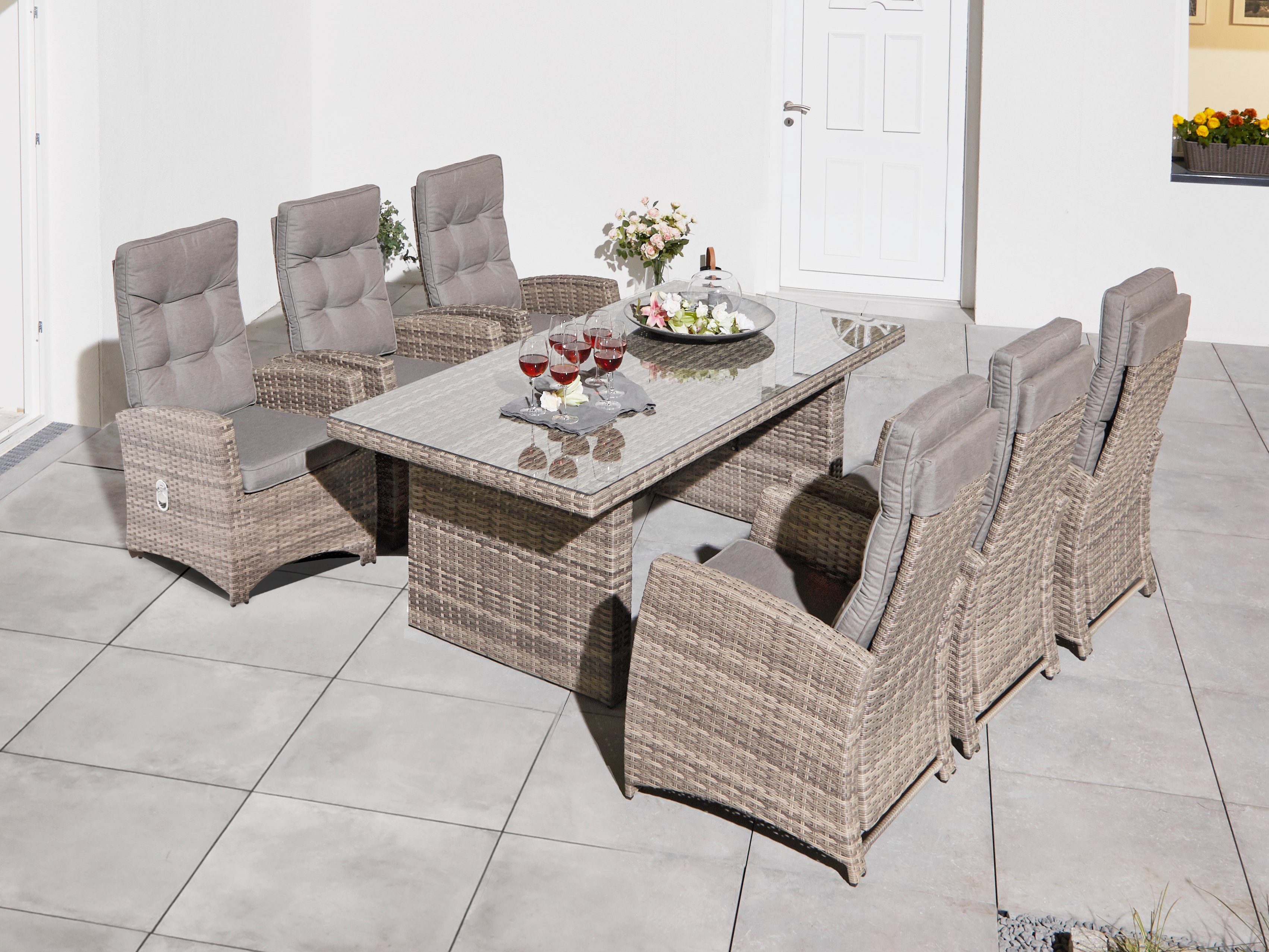 Juskys Polyrattan Sitzgruppe Rimini Plus 9 Teilig Wetterfest Gartenmobel Set Mit Tisch 8 Stuhle Essgruppe Fur 8 Personen Beige Grau