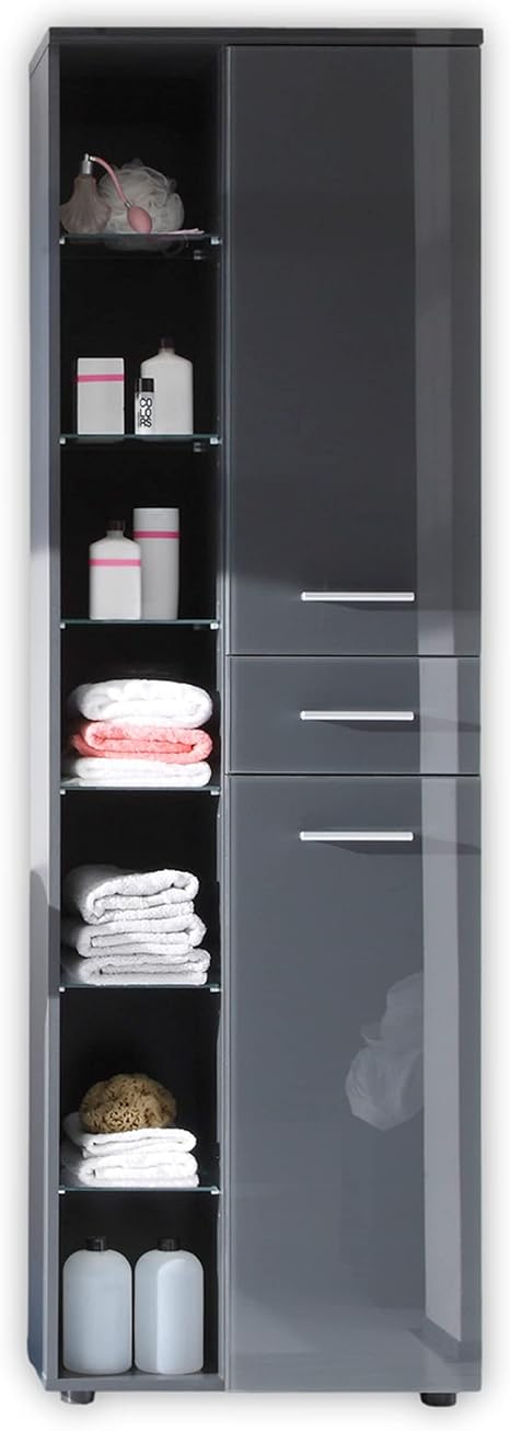 Pharao24 Badezimmer Hochschrank In Dunkel Grau Hochglanz 45 Cm Breit Amazon De Kuche Haushalt