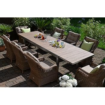 Amazon De Rattan Aluminium Outdoor Garten Wintergarten Mobel 8 Sitz Runde Esstisch Set In Grau