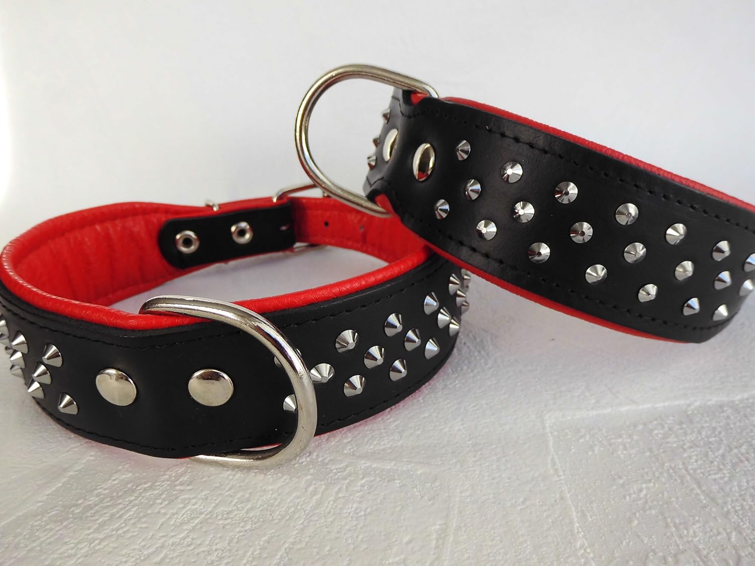 Lusy011 Leder Halsband Hundehalsband Nieten Halsumfang 33 41cm Schwarz Rot Neu Pl 11 2 1055 Amazon De Haustier