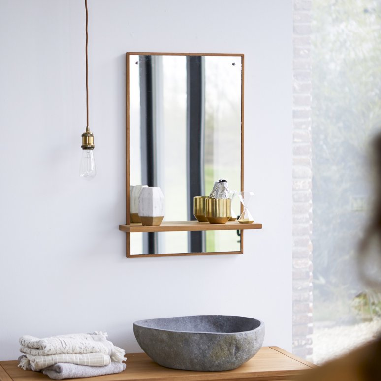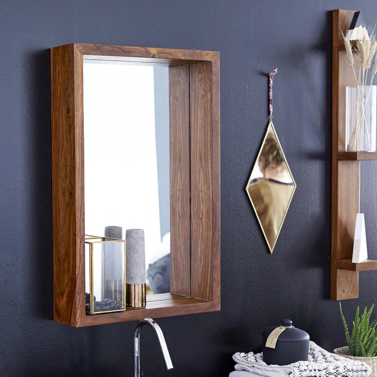Woodkings Bad Spiegel Sydney Holz Rahmen Badspiegel Mit Ablage Wandspiegel Badmobel Badezimmermobel Schminkspiegel Wildeiche 56x65 Wohnwelten Shop De