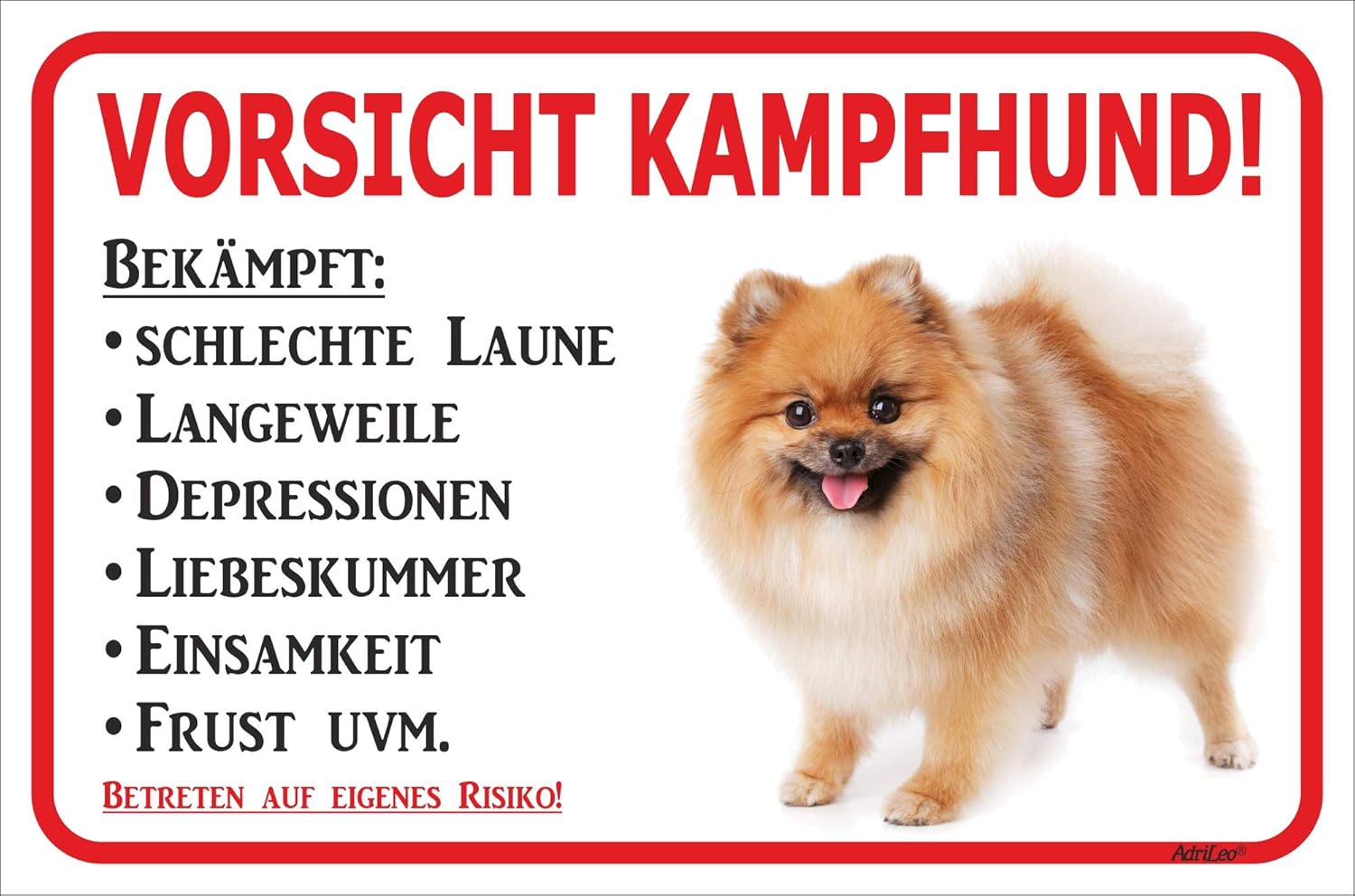 Adrileo Schild Vorsicht Gelber Spitz Zwergspitz Pomeranian Kampfhund 20x30cm Amazon De Haustier