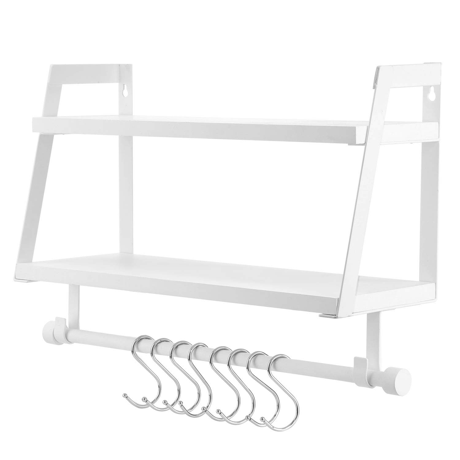 Halcent Wandregal Holz Wandboard Hangeregal 2 Etagen Wand Regal Kuche Gewurzregal Duschregal Badregal Mit 8 Abnehmbaren Haken Fur Kuche Badezimmer Wohnzimmer Aufbewahrung Organisation Schweberegale