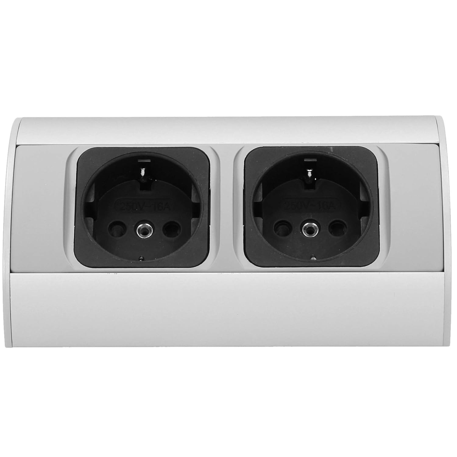 Abbildung kann vom Original abweichen. Schalter-Programme - Möbel Steckdosen. Möbel-Steckdose 2-fach schwarz silber für Küche und Büro Mehrfachsteckdose vertikale und horizontale Montage als Tischsteckdose und Küchensteckdose Ecksteckdose Steckdosenleiste.